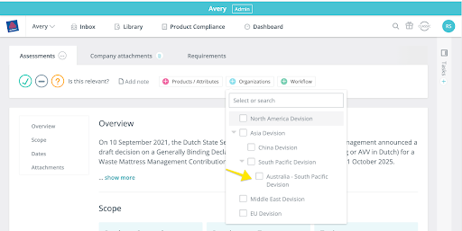 - You can tag and scope regulations and requirements to an organizational hierarchy.