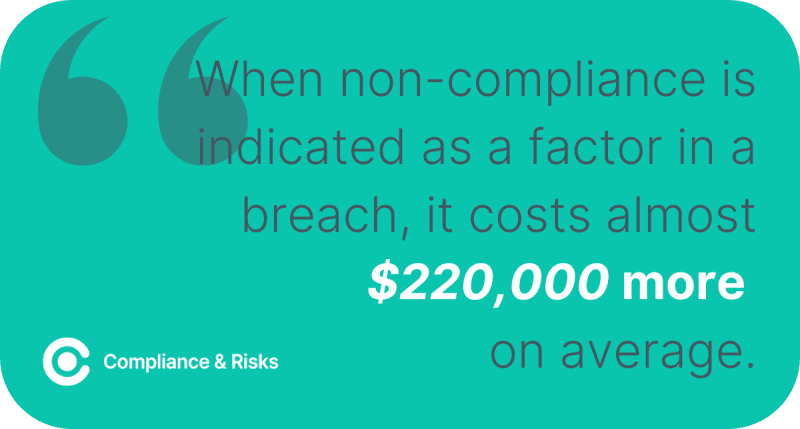 11. When non-compliance is indicated as a factor in a breach, it costs almost $220,000 more on average. (IBM’s Cost of a Data Breach Report 2023)