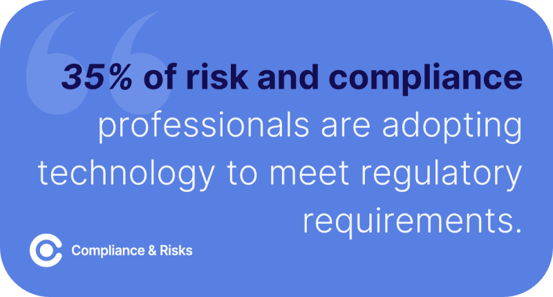1. 35% of risk and compliance professionals are adopting technology to meet regulatory requirements. (Navex Global’s 2022 Definitive Risk & Compliance Benchmark Report)