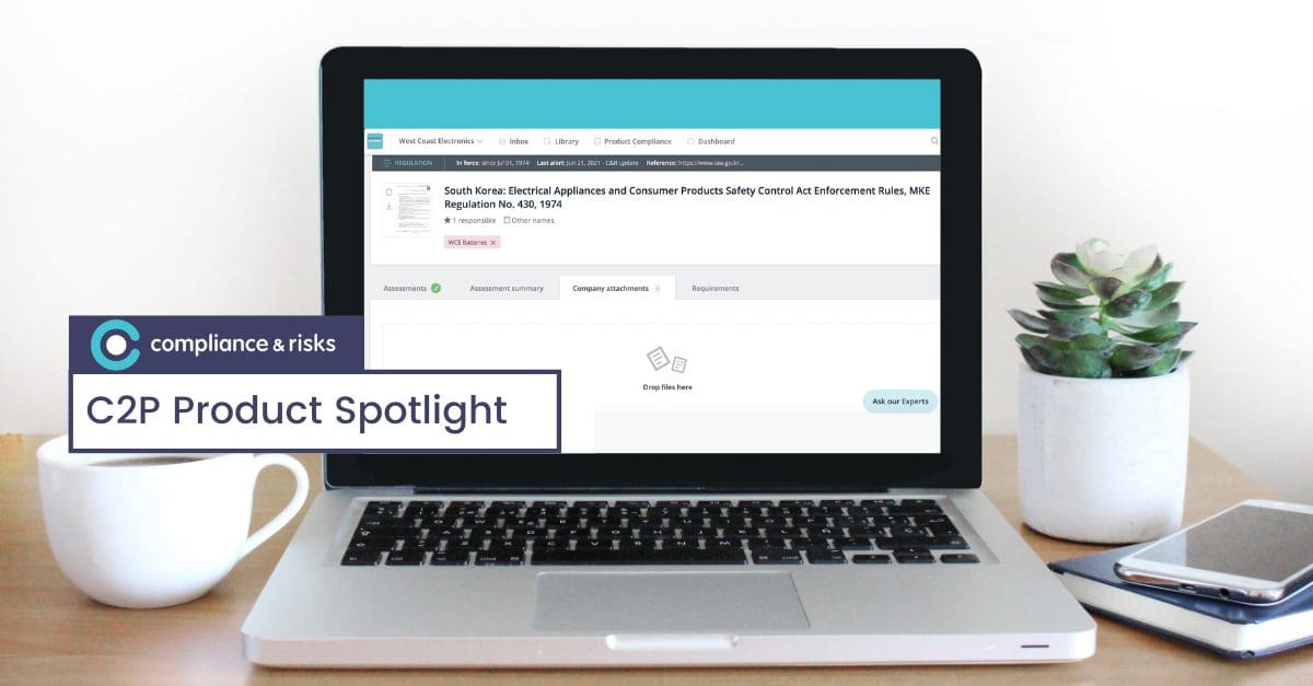 Our Product Compliance module in C2P helps our clients achieve, maintain and demonstrate compliance for all products in all markets. It combines Requirement and Evidence Management, Dynamic Product Compliance Specs, and our Impact Assessment Workflow all in one place.
