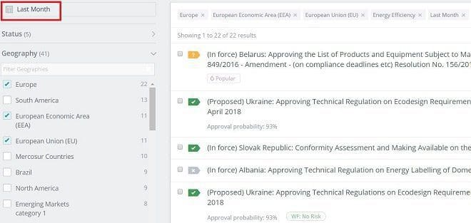 Search results can be exported to Excel with results now including the ‘Status’ of a regulation and your notes such as ‘is it relevant?’.