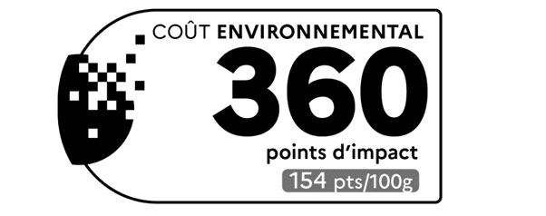 A standardized sign must be used, as shown in the Order, which expresses the environmental cost in “impacts points” per 100 grams.