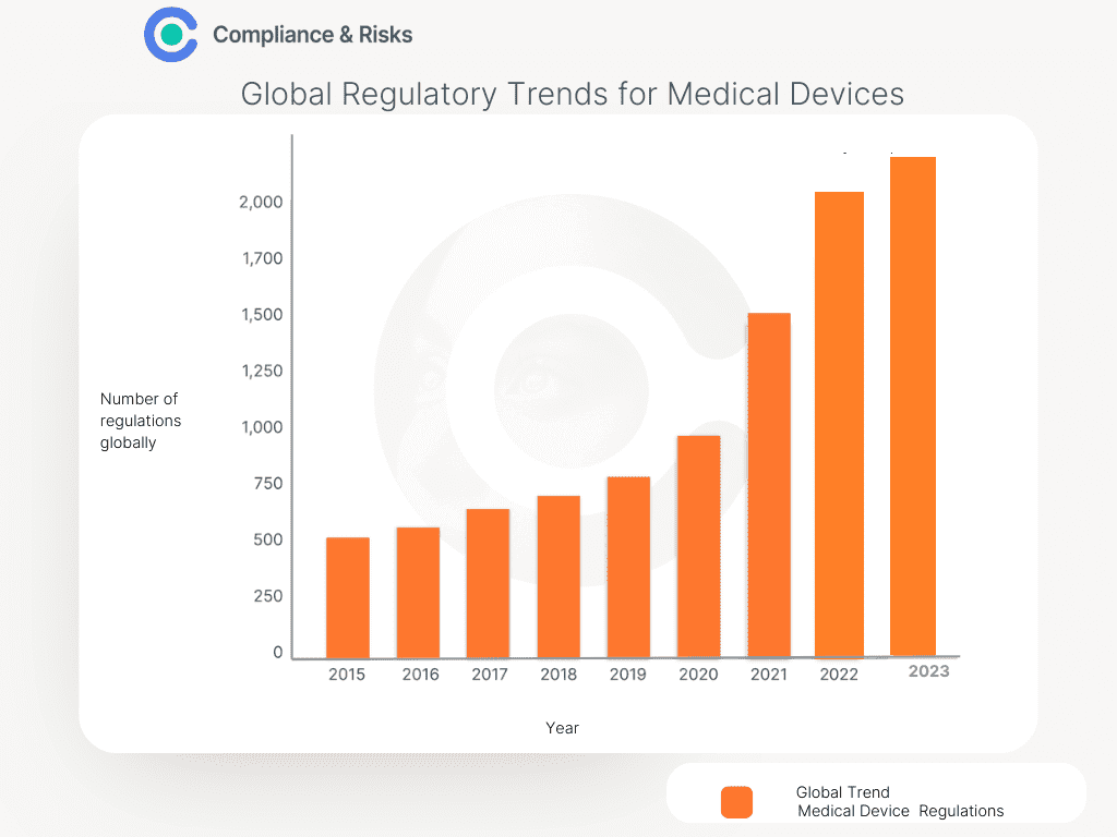 Figure 1 below shows this growth has reached unprecedented levels with year on year increase in Regulations for medical device manufacturers since 2015.