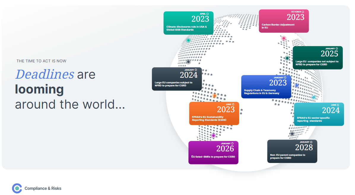Image 1: Looming global ESG deadlines. Source: C2P Platform by Compliance & Risks