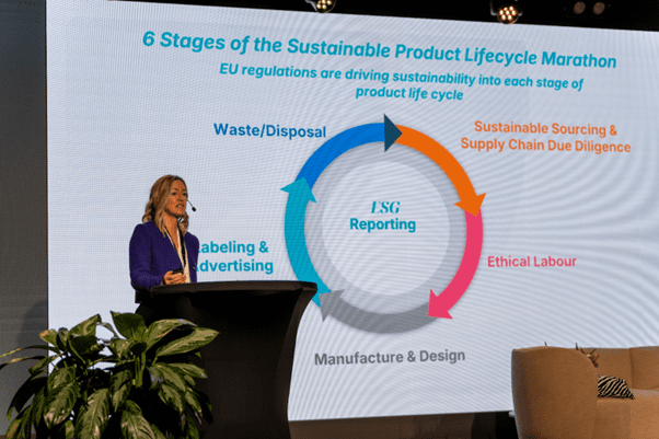Navigating the evolving regulatory landscape, particularly EU regulations and the product life cycle, was also a core topic of discussion. I did a presentation on the importance of viewing sustainability regulatory compliance as a marathon and not a sprint and discussed some recent EU regulations where sustainability obligations are embedded across the entire product life cycle. Strategies for setting the pace, navigating obstacles, and finishing strong in regulatory compliance were also discussed. Regulatory monitoring and horizon scanning tools backed by regulatory expertise – such as that offered by our C2P platform – was a key talking point and highlighted as pivotal in navigating the continuous regulatory wave.