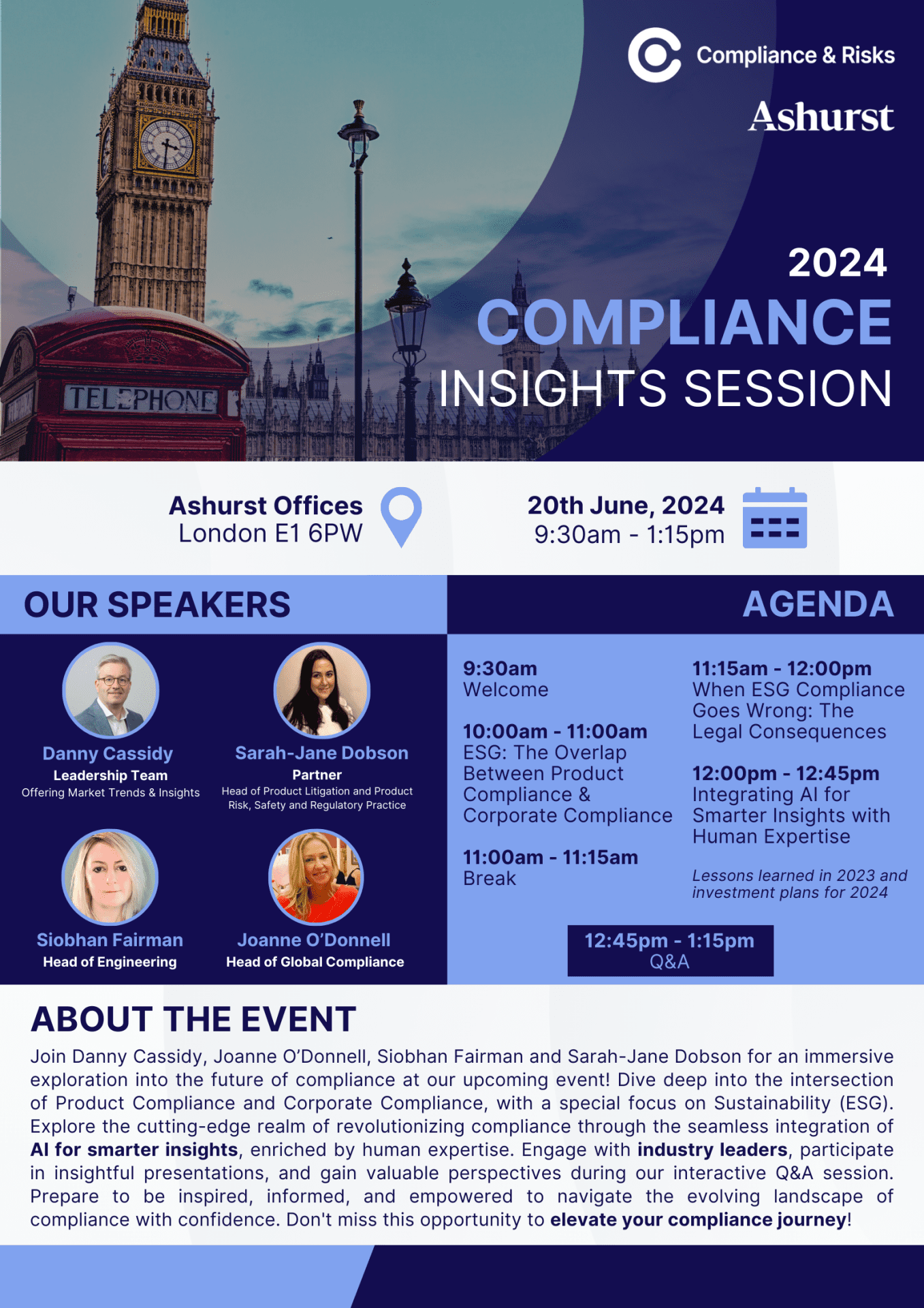 JUNE 20th 2024 | 9.30AM-1.00PM | ASHURST OFFICES, LONDON FRUIT & WOOL EXCHANGE, 1 DUVAL SQUARE, LONDON E1 6PW, UNITED KINGDOM
