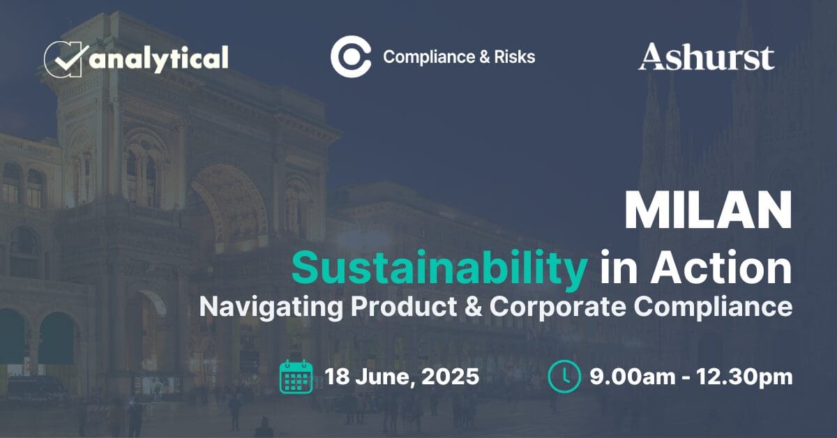 Join industry leaders as we examine the legal, regulatory, and strategic implications of both ESG and product compliance—and the risks businesses face when failing to meet sustainability standards. Gain expert insights from our partners at Ashurst, who will discuss the legal consequences of non-compliance and the increasing regulatory pressure on organizations across both corporate and product compliance landscapes.