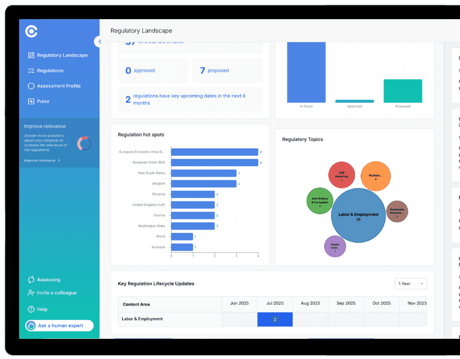 Provides a real-time, dynamic dashboard of global regulatory activity: what’s in force, approved, and proposed.
